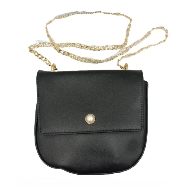 Γυναικεία τσάντα ώμου μαύρη με χρυσή αλυσίδα. Διαστάσεις 18χ19. Μικρή βολική τσαντούλα για όλες τις ώρες.